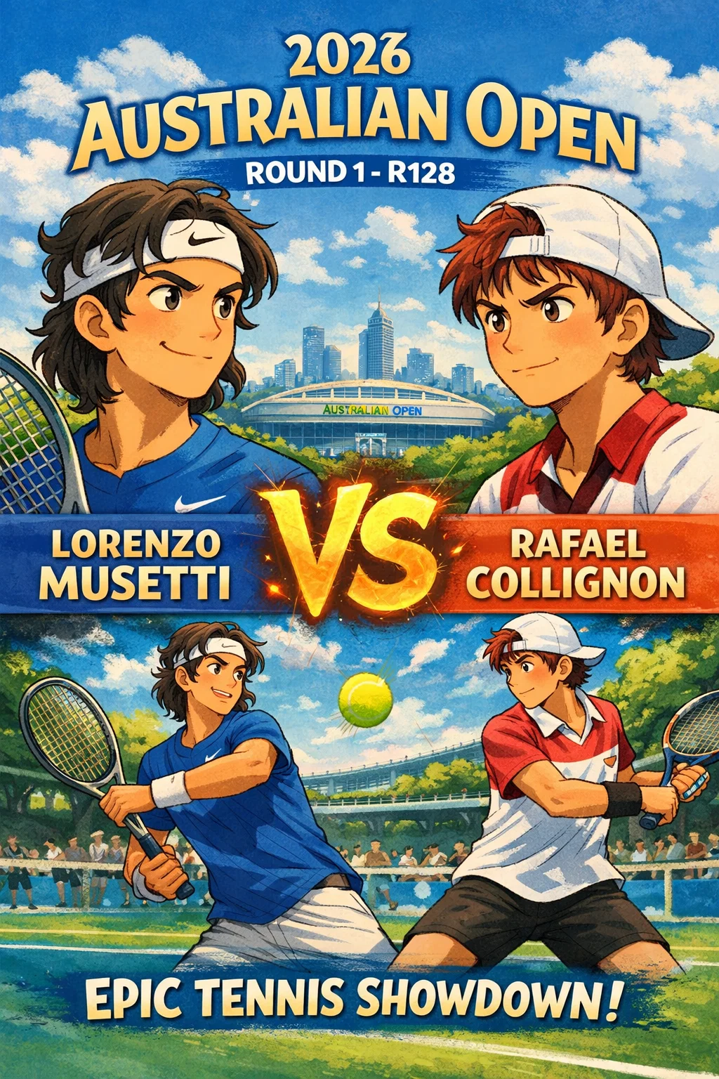 2026 Australian Open 128강에서 로렌초 무세티는 탑5 데뷔전다운 치밀함으로 라파엘 콜리뇽을 꺾고 64강(로렌초 소네고전)으로 나아갔습니다.