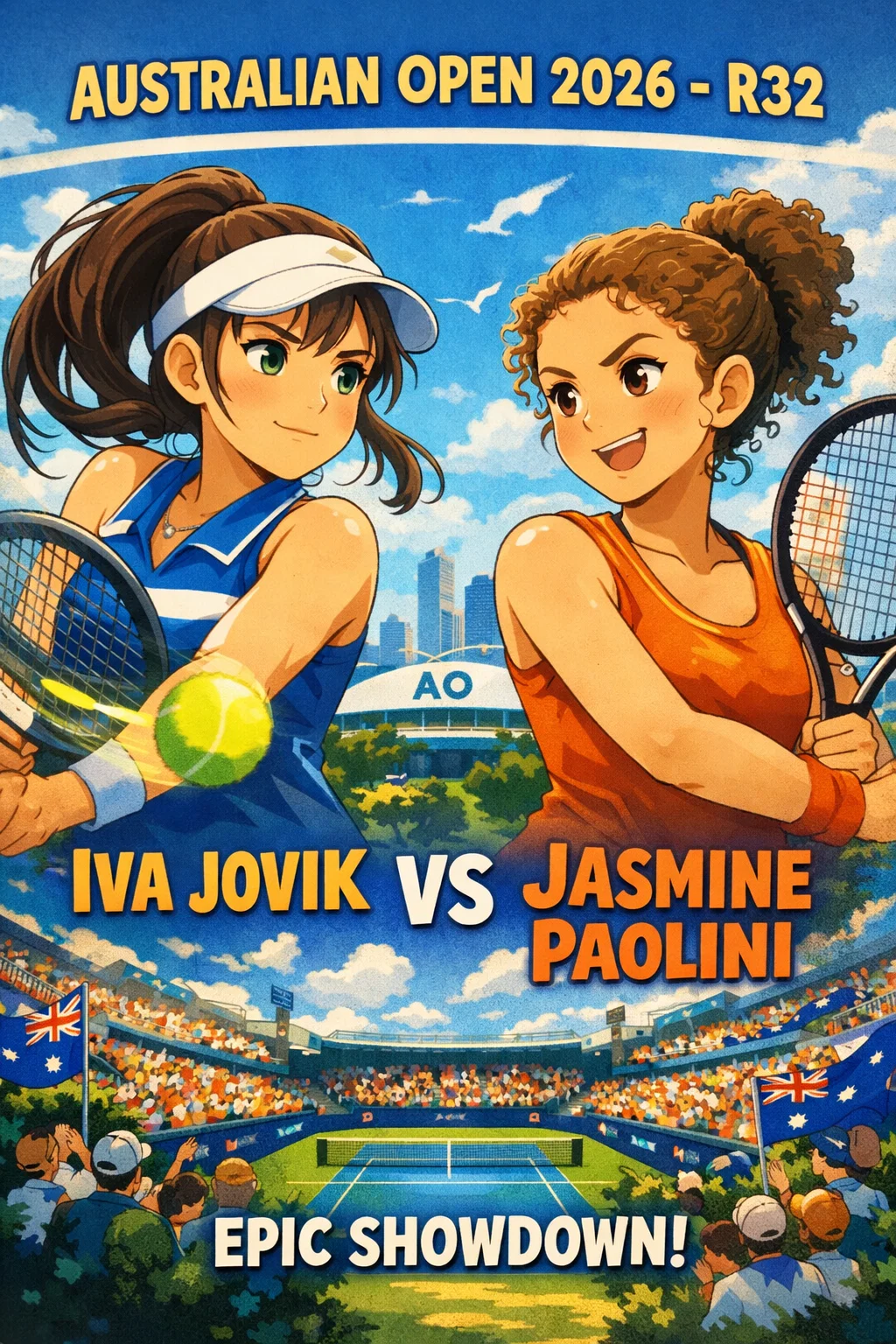 오늘은 여자 단식 32강전의 하이라이트, 미국의 차세대 스타 이바 조비크(Iva Jovic)와 이탈리아의 재스민 파올리니(Jasmine Paolini)의 대결을 깊이 파헤쳐보겠습니다.