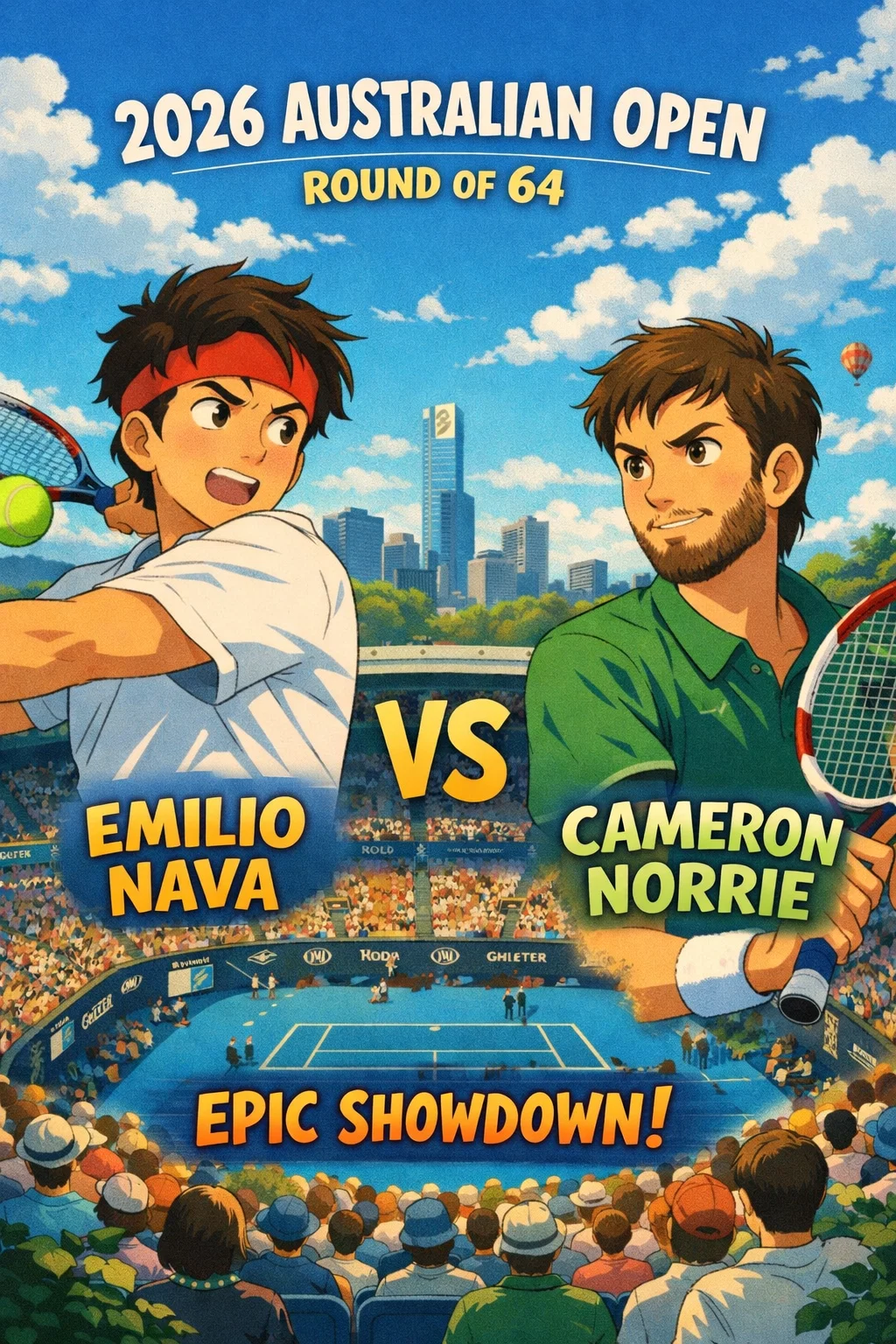 2026 AO 64강전은 카메론 노리의 서브 14 에이스, 포핸드 위너 압도와 멘탈로 에밀리오 나바를 3-1 셧아웃한 명경기였다.