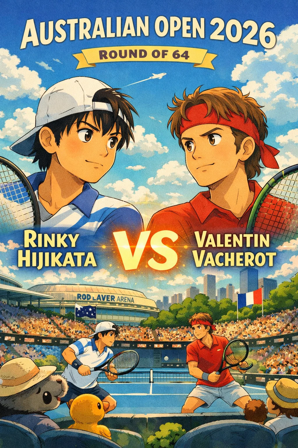 2026년 1월 22일 멜버른 파크 로드 레이버 아레나에서 열린 남자 단식 64강전, 세계 31위 발랑탱 바케로(모나코)가 호주 와일드카드 린키 히지카타(115위)를 6-1, 6-3, 4-6, 6-2로 제압하며 다음 라운드에서 벤 셸턴과 맞붙게 됐습니다.