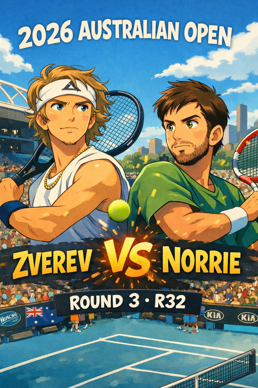 2026 호주 오픈 32강은 알렉산더 즈베레프의 포핸드(25 위너)와 서브 에이스(16개)가 빛난 4세트 승부였습니다. 카메론 노리의 2세트 반격에도 코치팀 지원 속 극복하며 우승 후보 입지 굳혔죠.