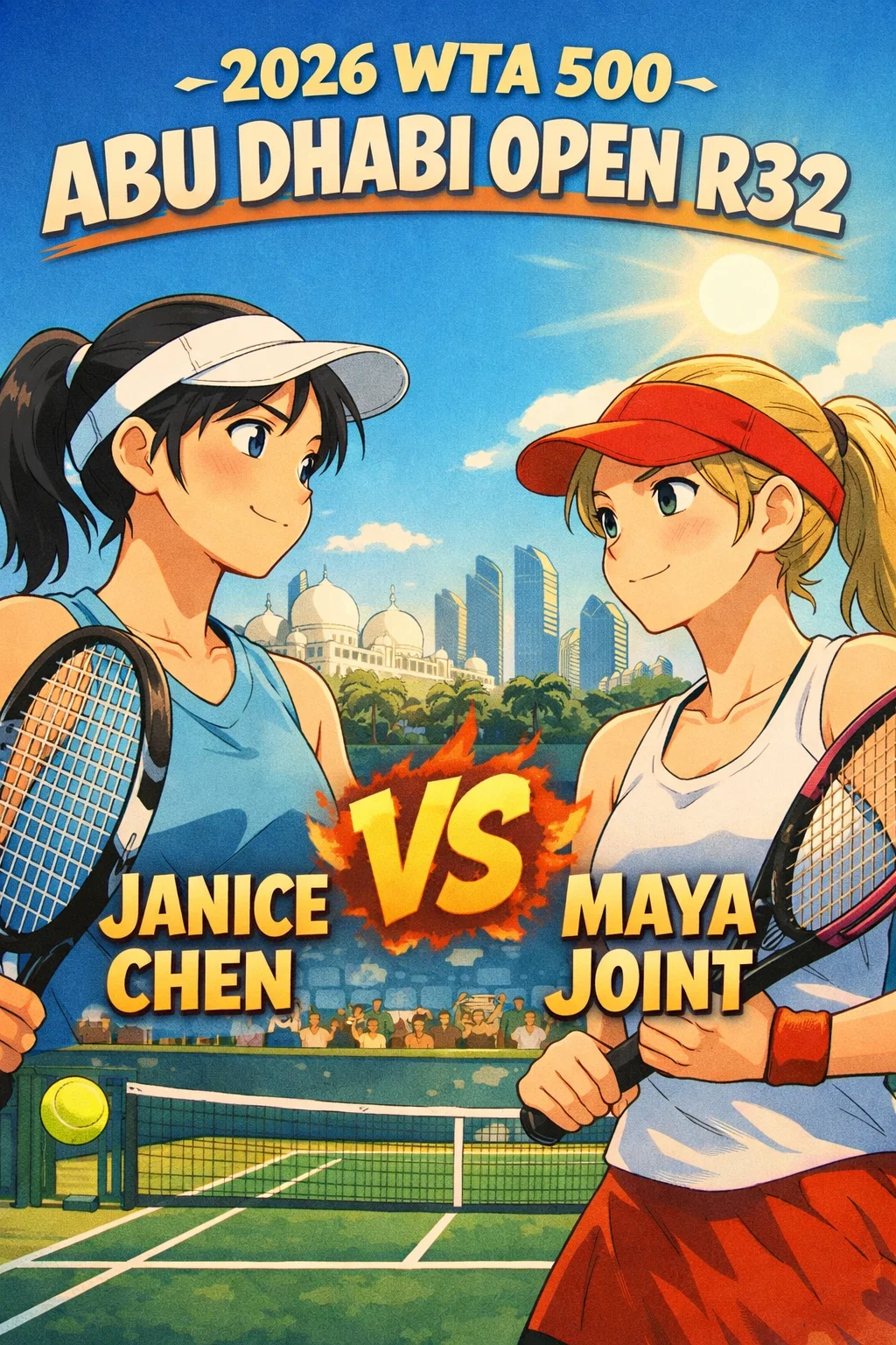 2026 아부다비 오픈 R32는 재니스 첸의 7-6(6) 3-6 6-3 역전승, 서브 에이스 10개 포핸드 42개가 화제입니다.