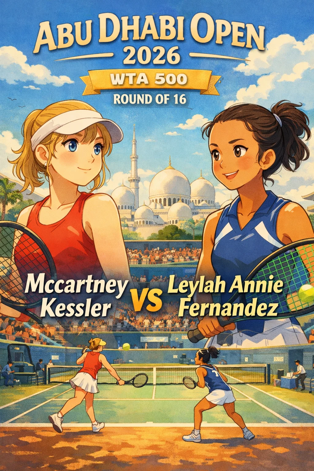 케슬러 온코트: "레일라는 강적, US 오픈 챔피언십 경험 존경. 서브가 오늘 키였고, 형 코치 덕에 그라인드했다. 아부다비 더운 날씨에도 74분 승리 만족. 8강서 다음 도전!"