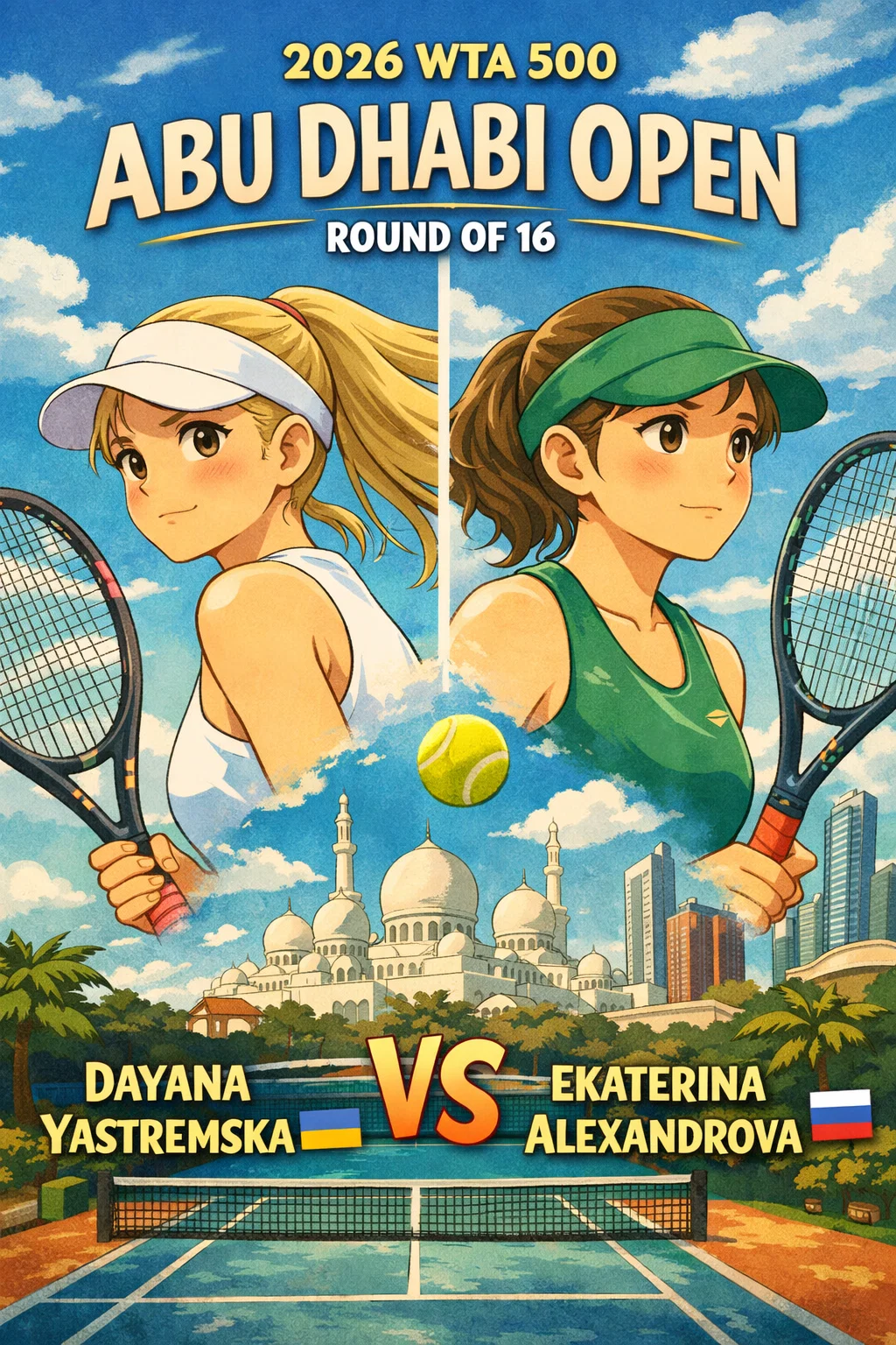 2026 아부다비 오픈 16강은 에카테리나 알렉산드로바의 6-3 6-0 승리로, 서브 8에이스 포핸드 22위너가 지배력 증명.