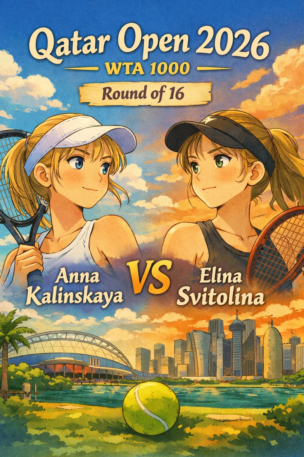 안나 카린스카야 온코트 인터뷰: "스비톨리나는 항상 어렵다. 1세트 중반 포핸드 리듬 찾고 서브 에이스 넣으니 흐름 탄 기분. 패트릭 코치가 '야외 하드에선 포핸드 다운라인 노려라' 지시했는데 완벽. 8강 기대된다. 도하 팬들 열정 최고!" 트로피 리프트 대신 "스비톨리나 존경, 좋은 경기였다"고 스포츠맨십 강조.
