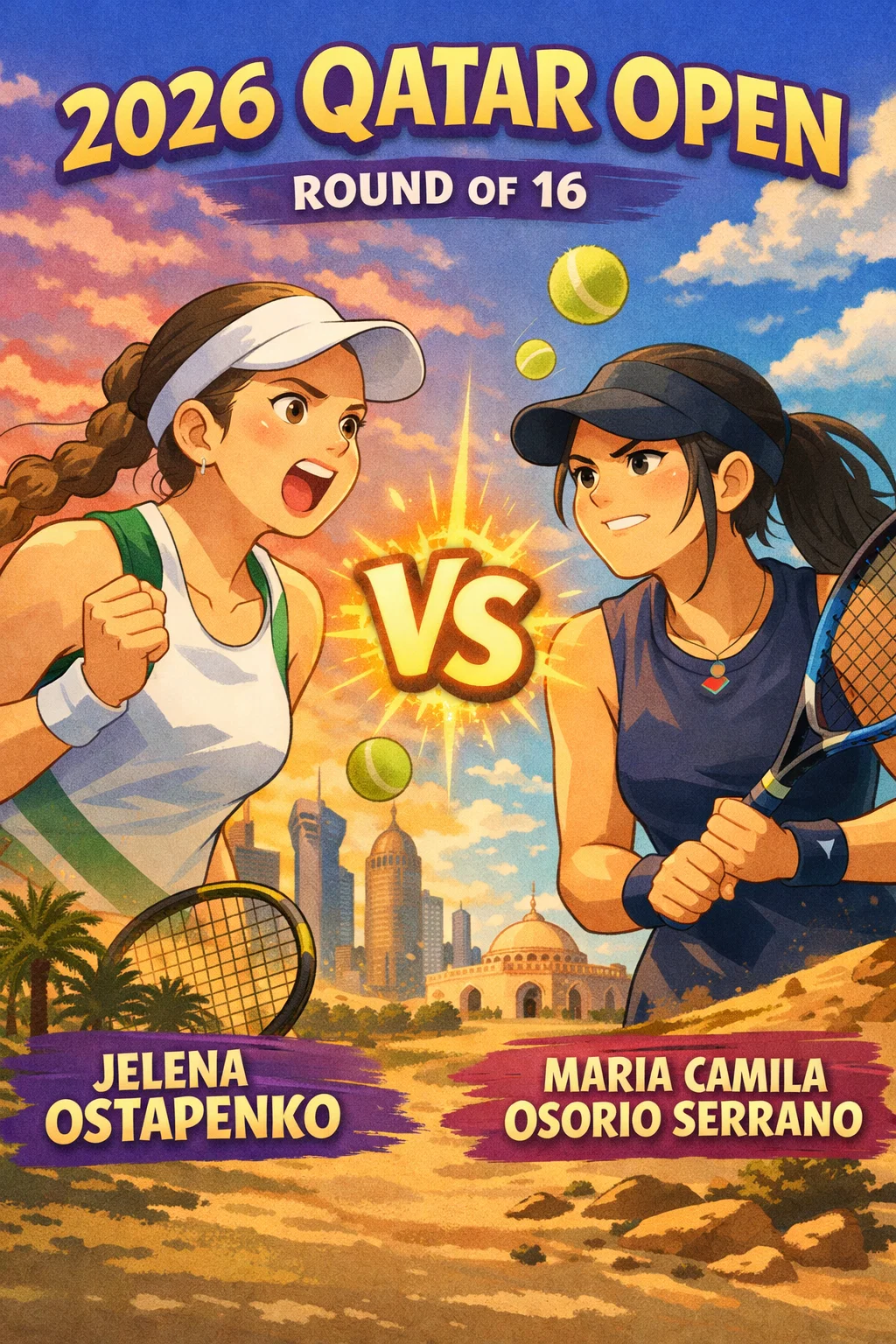 2026 카타르 오픈 16강전은 옐레나 오스타펜코의 서브 에이스 14개와 포핸드 위너 38개가 빛난 일방적 승부였다.