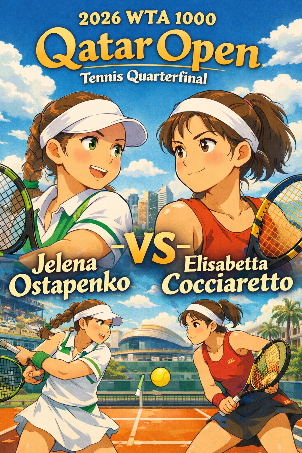 2026 카타르 오픈 준준결승은 옐레나 오스타펜코의 서브 에이스 9개와 포핸드 22위너가 빛난 완벽 승리였다.