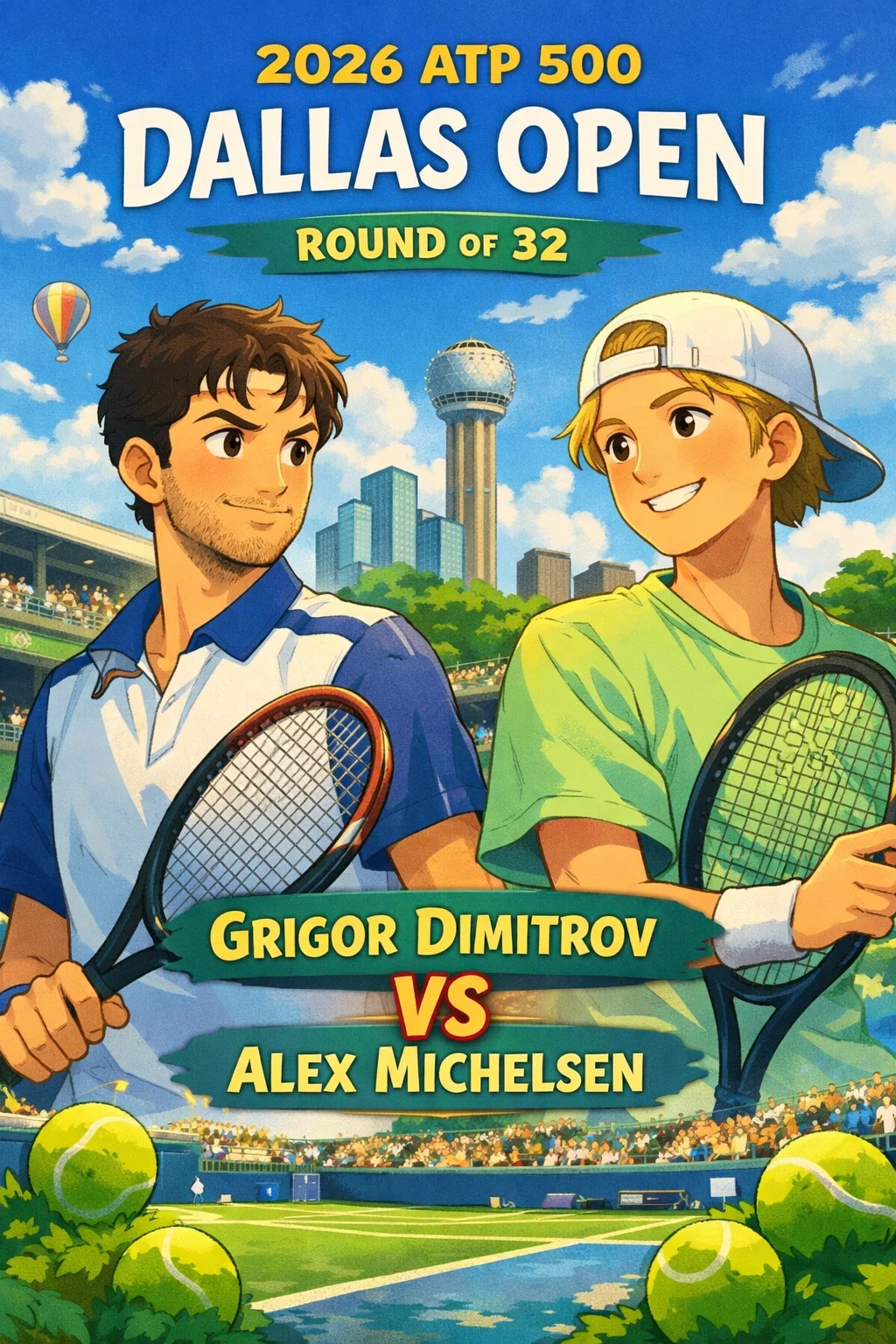 2026 댈러스 오픈 32강은 알렉스 미첼슨의 서브 에이스 12개와 포핸드 28 위너가 지고르 디미트로프를 5-7, 6-4, 6-4로 꺾은 역사적 순간입니다.
