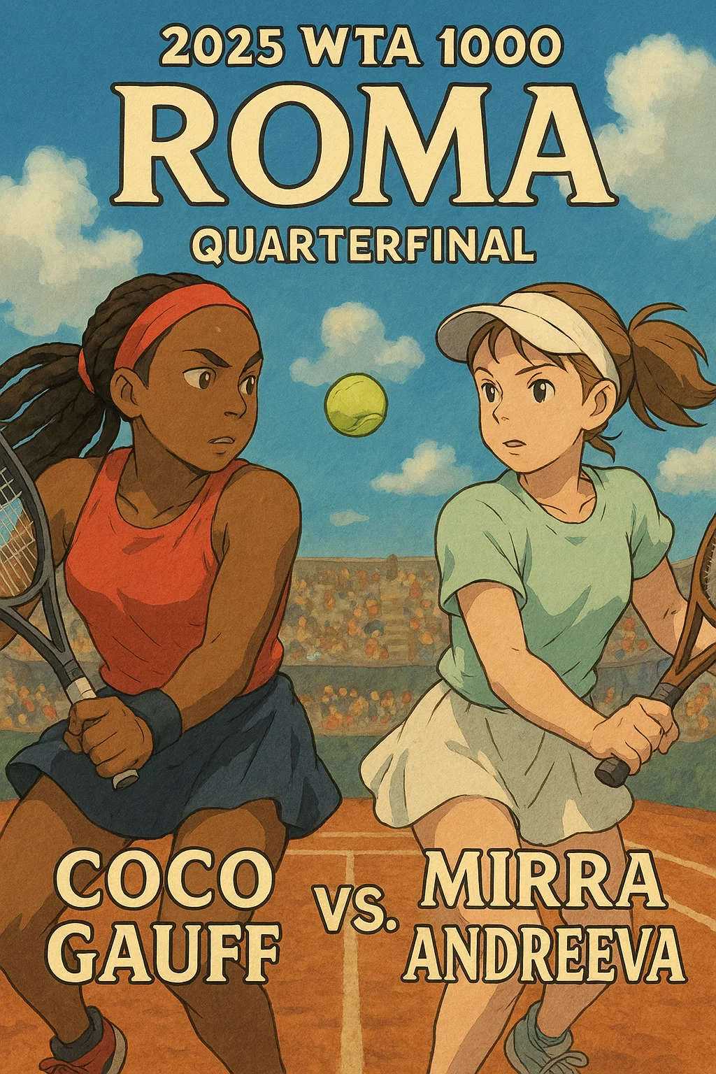 2025년 5월 14일 열린 WTA1000 로마(Internazionali BNL d’Italia) 여자 단식 8강전, 코코 가우프(Coco Gauff)와 미라 안드리바(Mirra Andreeva)의 대결을 심층 분석합니다.