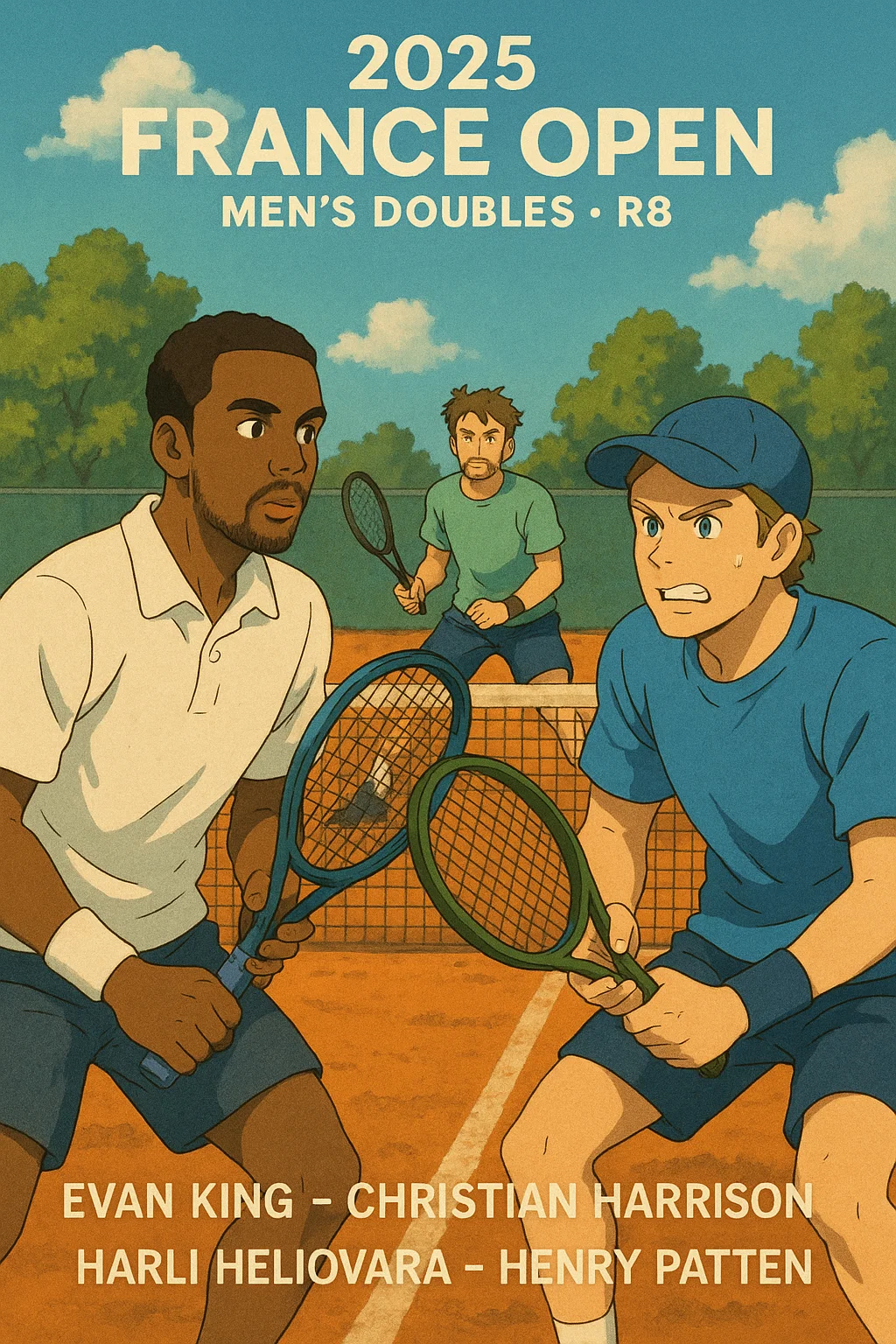 오늘은 2025년 6월, 파리 롤랑 가로스에서 열린 프랑스오픈(프랑스 오픈, Roland-Garros) 남자 복식 8강전, 에반 킹-크리스찬 해리슨(미국) 조와 해리 헬리오바라(핀란드)-헨리 패튼(영국) 조의 맞대결을 심층 분석합니다.