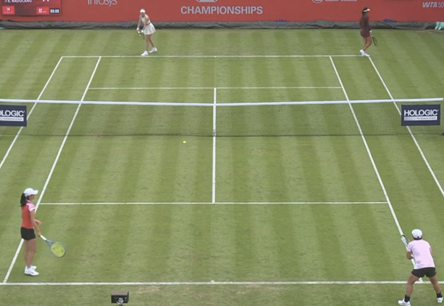 1세트 초반, 양 팀 모두 잔디 코트 적응에 집중하며 신중한 랠리를 이어갔습니다.