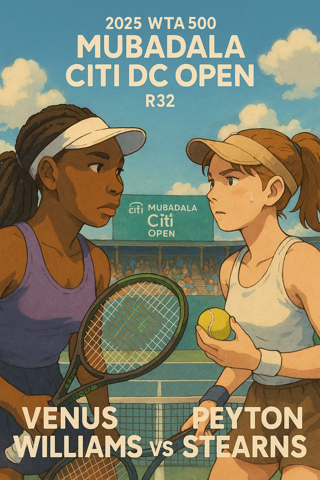 미국 워싱턴 D.C.에서 열린 2025 WTA500 무바달라 시티 DC 오픈(Mubadala Citi DC Open) 여자 단식 32강, 즉 R32에서 펼쳐진 비너스 윌리엄스(45세)와 페이턴 스턴스(23세)의 맞대결을 집중 분석해드리겠습니다.