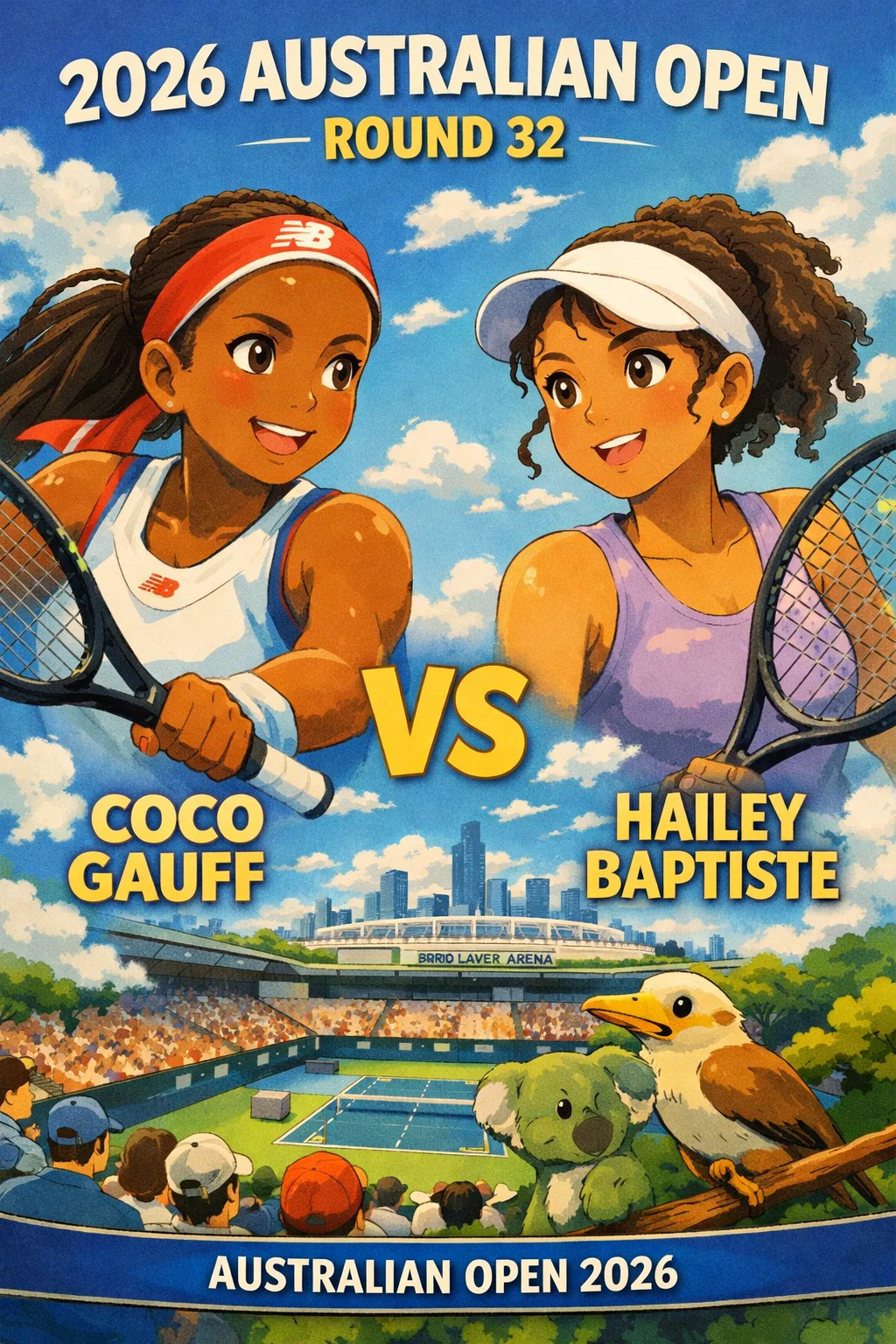 코코 가우프는 호주오픈 32강전에서 헤일리 뱁티스트를 상대로 초반 위기 극복하며 16강행 티켓을 거머쥐었습니다.