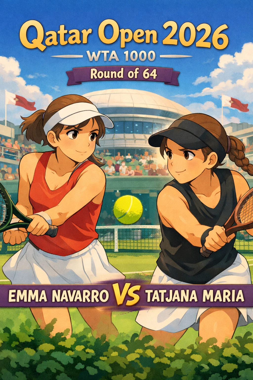 2026 카타르 오픈 64강전은 엠마 나바로의 서브 에이스 6개·포핸드 22위너가 타티아나 마리아를 압도한 경기였다.