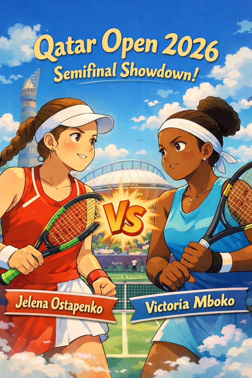 2026 카타르 오픈 준결승은 빅토리아 음보코의 서브 에이스 8개, 포핸드 22위너가 빛난 역사적 승리였다.