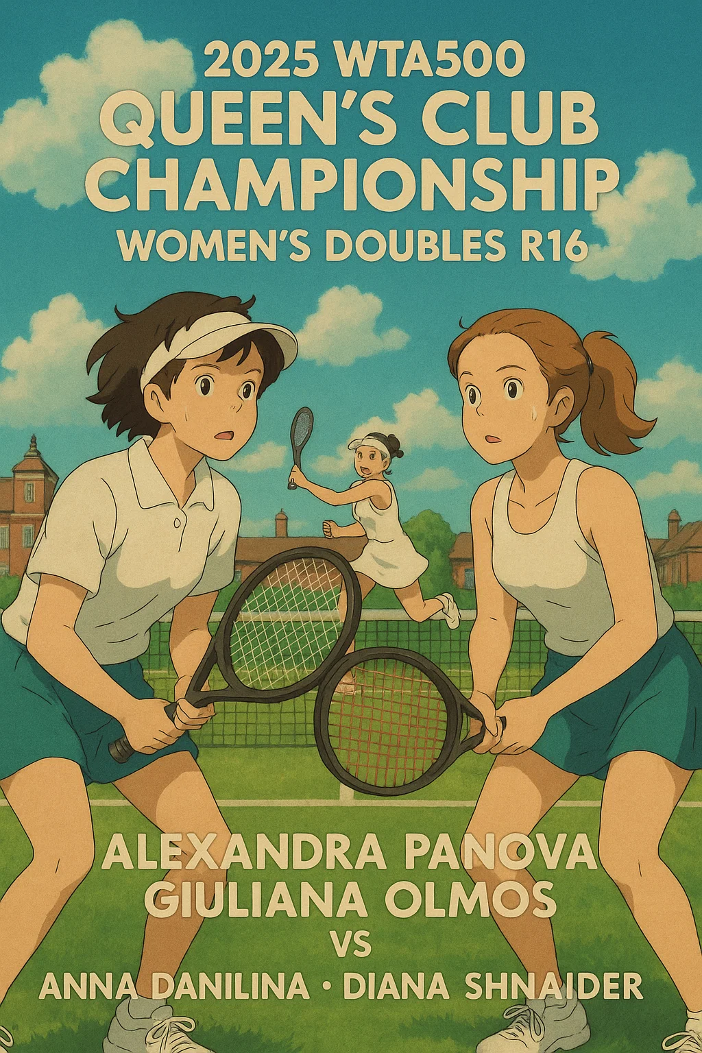 런던 웨스트 켄싱턴 퀸즈 클럽에서 열린 2025 WTA500 퀸즈 클럽 챔피언십 여자 복식 16강전, 알렉산드라 파노바-줄리아나 올모스 VS 안나 다닐리나-디아나 슈나이더의 맞대결을 심층 분석합니다.