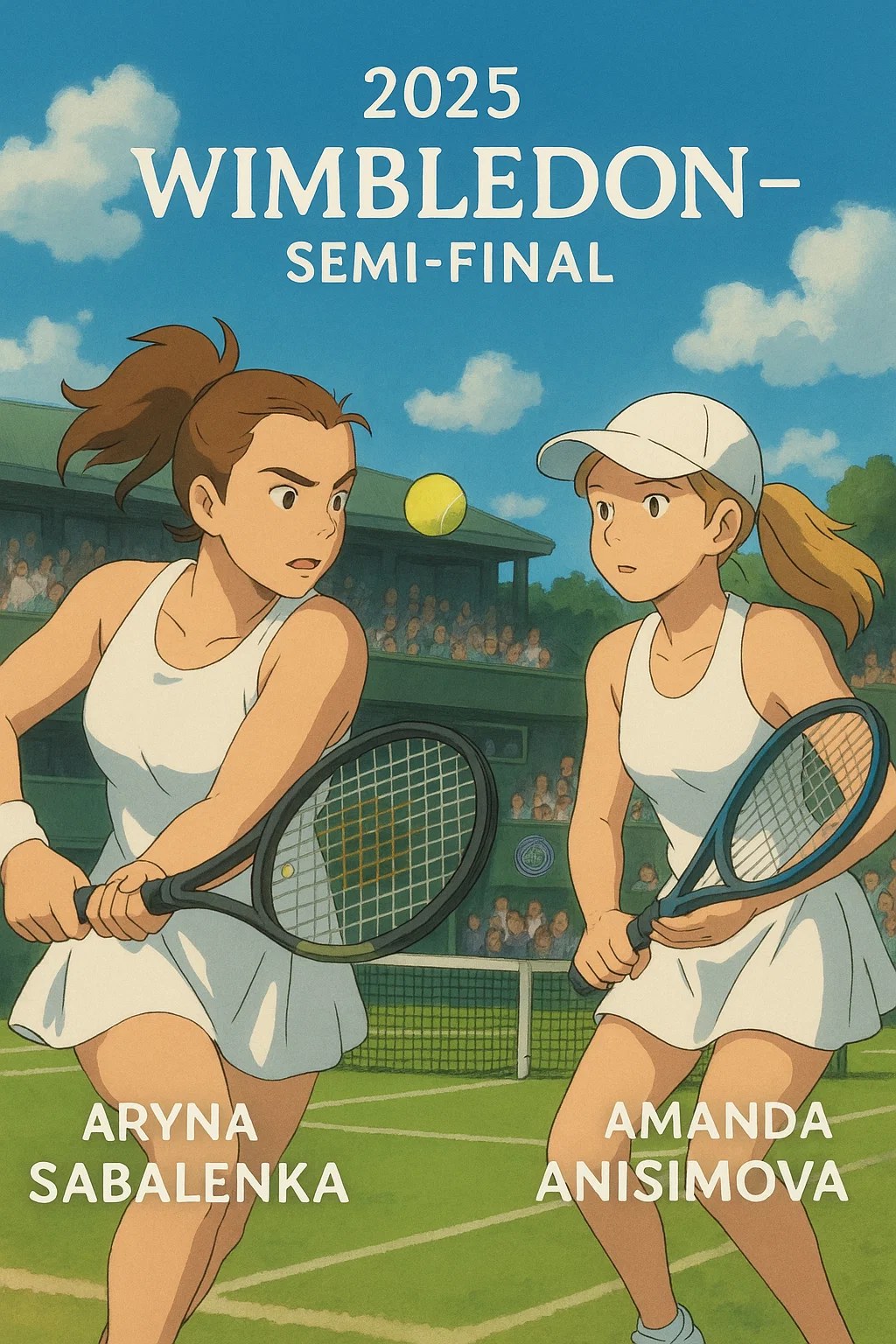 영국 런던 윔블던 올잉글랜드 클럽에서 열린 2025 윔블던 여자 단식 준결승전에서 아만다 아니시모바(Amanda Anisimova, 미국)가 현 세계랭킹 1위 아리나 사바렌카(Aryna Sabalenka, 벨라루스)를 세트 스코어 4:6, 6:4, 4:6으로 물리치고 자신의 첫 그랜드슬램 결승에 진출했습니다.